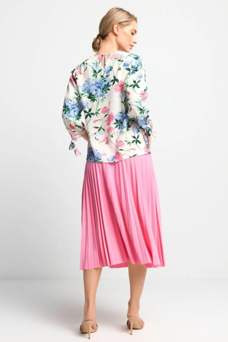 Diese sommerliche Bluse mit lässigen Cut-Outs und charmanten Schleifen-Cuffs verleiht jedem Deiner Outfits einen eleganten Touch. Wir kombinieren sie am liebsten mit einem pinken oder hellblauen Midirock für einen luftig-leichten Look.