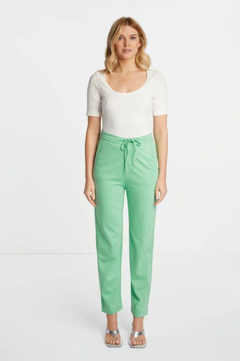 Die komfortablen Jersey-Pants sind dank Zipp und Knopf bürotauglich. Der elastische Bund mit Kordel setzt einen sportiven Akzent. Ebenso auch das softe und leicht stretchige Material. Seitentaschen ergänzen den entspannten Schnitt. Obermaterial: 75% Viskose, 21% Polyamid, 4% Elasthan Waschbarkeit: Schonwaschgang 30°C