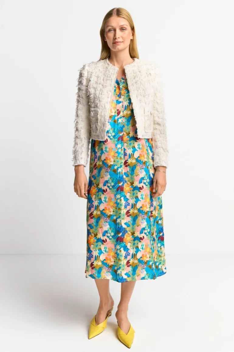 Diese kurze Jacke wird dank fransiger Struktur zum echten Eyecatcher! Sie lässt sich für unterschiedliche Anlässe leicht up- und downdressen. Der fransige Saum und die detailreiche Verarbeitung verleihen dem festlichen It-Piece einen edlen Charme.