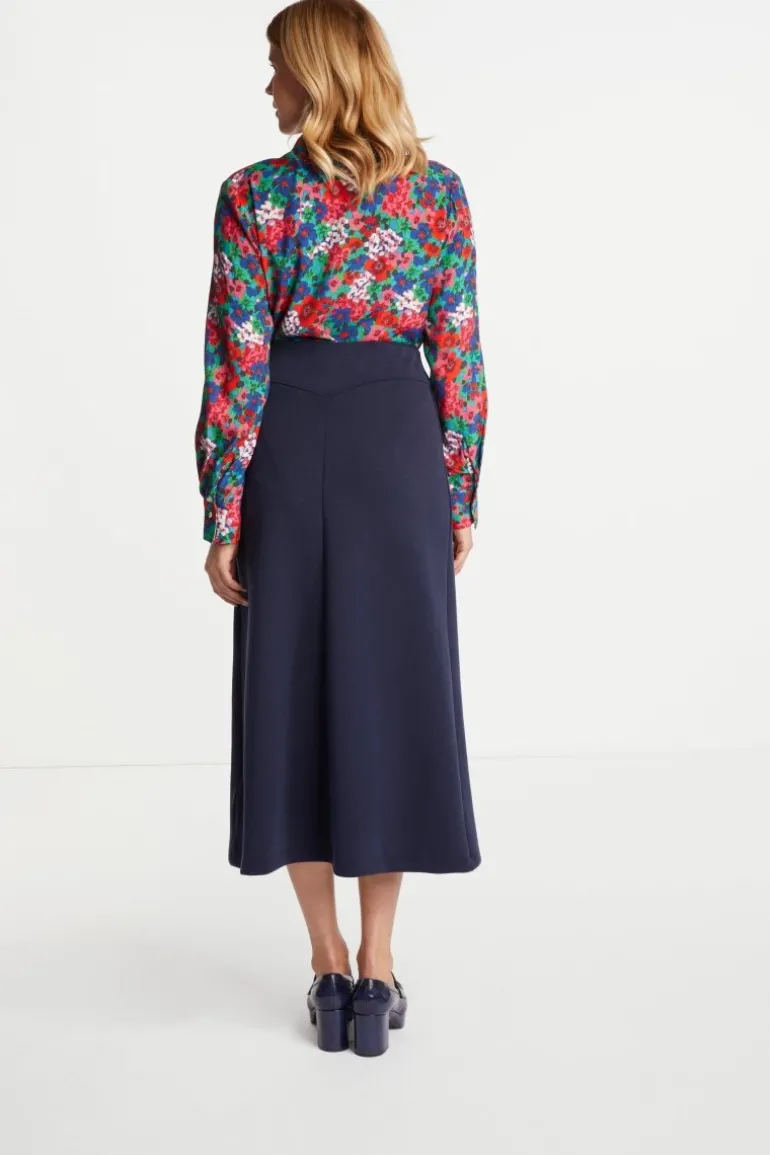 Der Midirock aus super weichem Interlock-Jersey präsentiert ein minimalistisches Design in A-Form. Die Passe und der elastische Bund unterstreichen sein angenehmes Tragegefühl. Obermaterial: 52% Modal, 42% Polyester, 6% Elasthan Waschbarkeit: Schonwaschgang 30°C