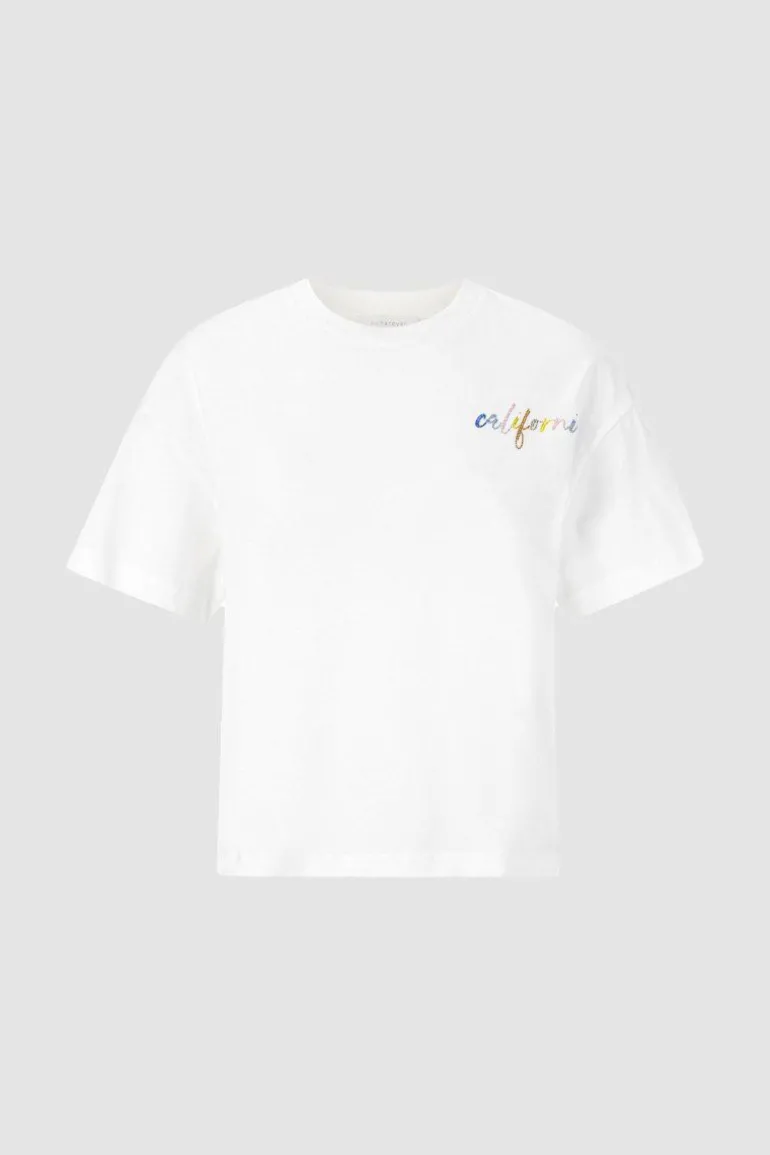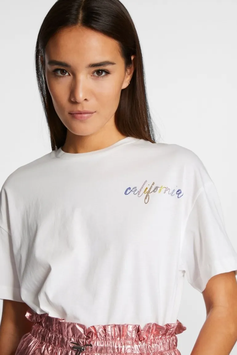 Lässig kommt dieses contemp T-Shirt im Oversized-Schnitt. Auf der linken Brustseite präsentiert es einen coloured „California“-Schriftzug aus Strass. Die softe Bio-Baumwolle sorgt für Tragekomfort.