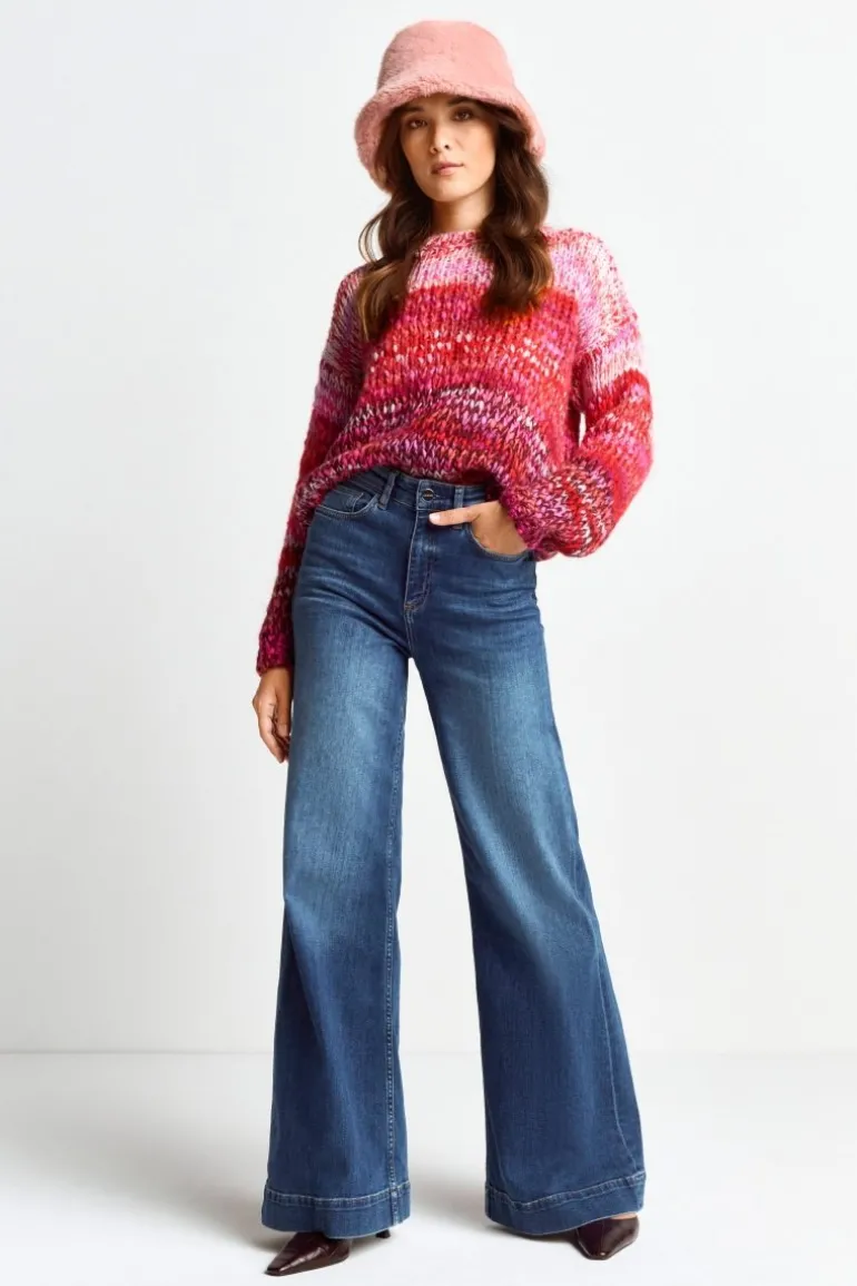 Dieser bunte Pullover in Weiß und Rot aus Melangestrick ist ein Must-have für farbenfrohe Herbstoutfits! Die Colour-Blocking-Optik, eine weiche Haptik und der weite Schnitt machen ihn zum Hingucker für lässige Looks.