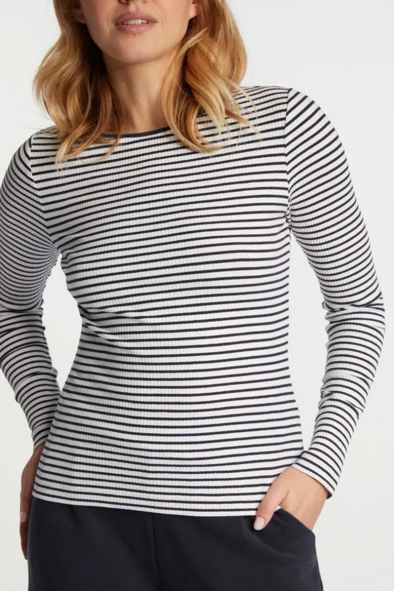 Streifen verleihen diesem bodycon Longsleeve mit Bio-Baumwolle einen sportiven Marine-Look. Es präsentiert sich mit Rippenstruktur und Crew-Neck. Obermaterial: 95% Baumwolle, 5% Elasthan Waschbarkeit: Schonwaschgang 30°C