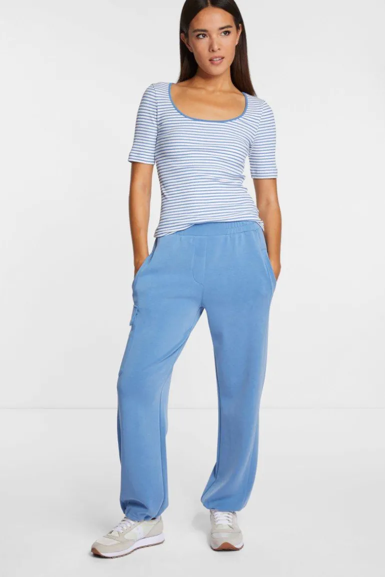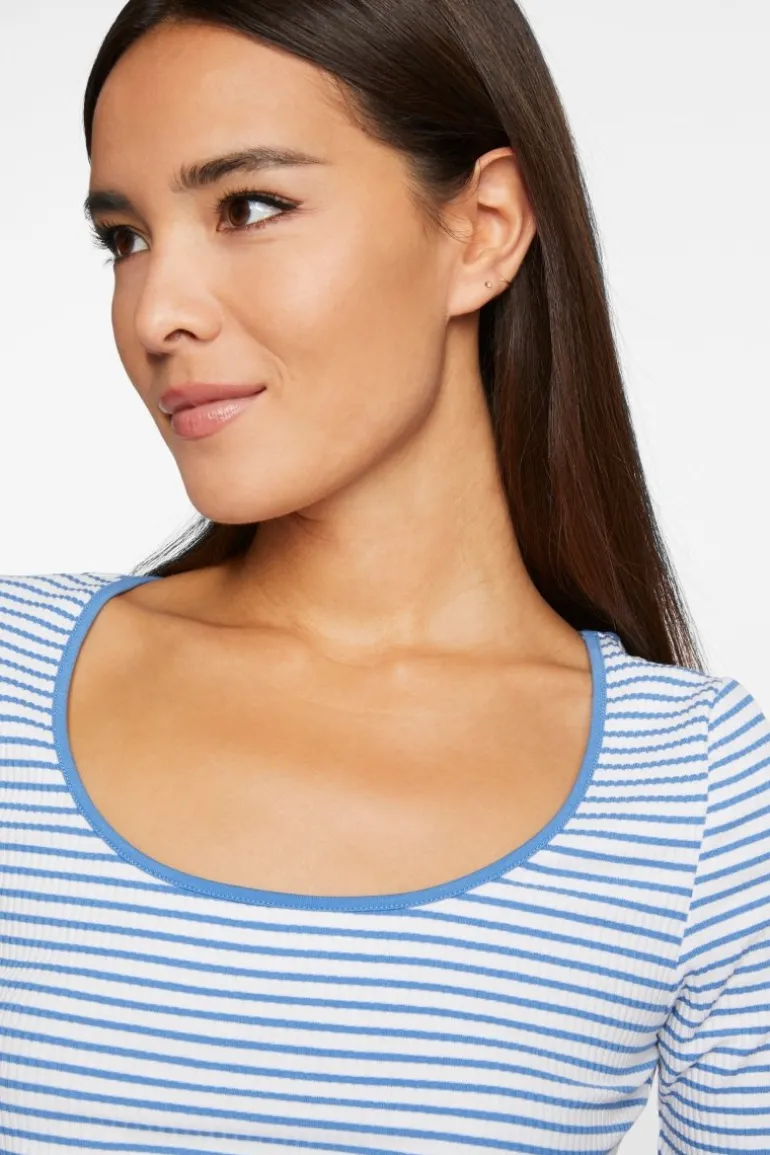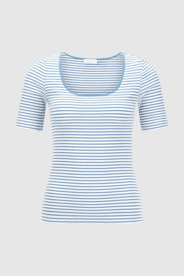 Maritim präsentiert dieses T-Shirt sporty Stripes. Für All-Day-Cozyness sorgt das Rippen-Design mit organischer Baumwolle. Das Shirt sitzt bodycon und hat einen Rundhals.