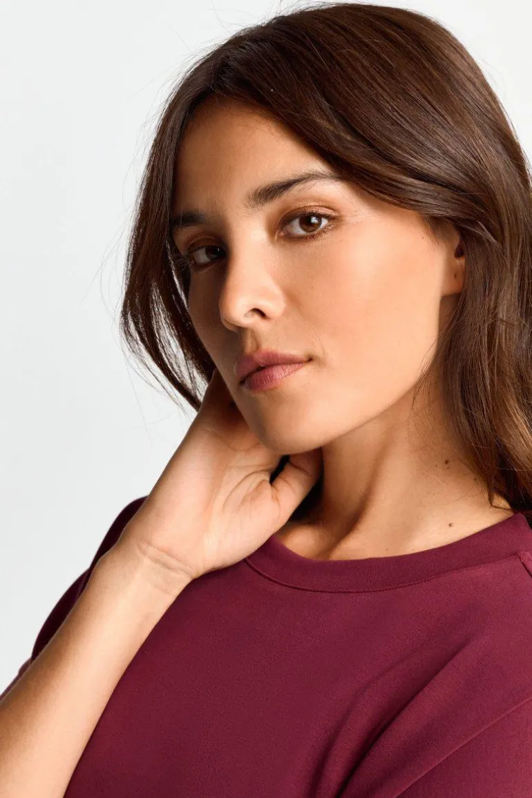 Dieses Oversize-T-Shirt in Burgunderrot aus kuscheligem Scuba-Jersey wird durch seine Super-Soft-Qualität und die lässige Passform zum It-Piece für legere Alltagslooks. Für ein harmonisches Outfit kannst Du es mit der dazugehörigen Hose kombinieren.