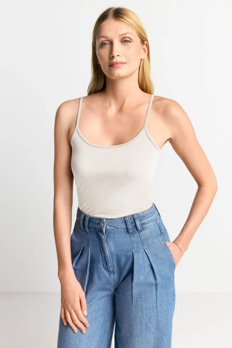 Dieses seidenweiche Spaghettiträger-Top ist ein vielseitiges Trend-Basic! Die hochwertige Fertigung macht es zur perfekten Wahl für sportlich-elegante Sommerlooks sowie in Kombination mit Jacken und Blazern. Obermaterial: 95% Viskose, 5% Elasthan Schonwaschgang 30°C, Nicht bleichen, Nicht im Trockner trocknen, Nicht heiß bügeln, Nicht chemisch reinigen