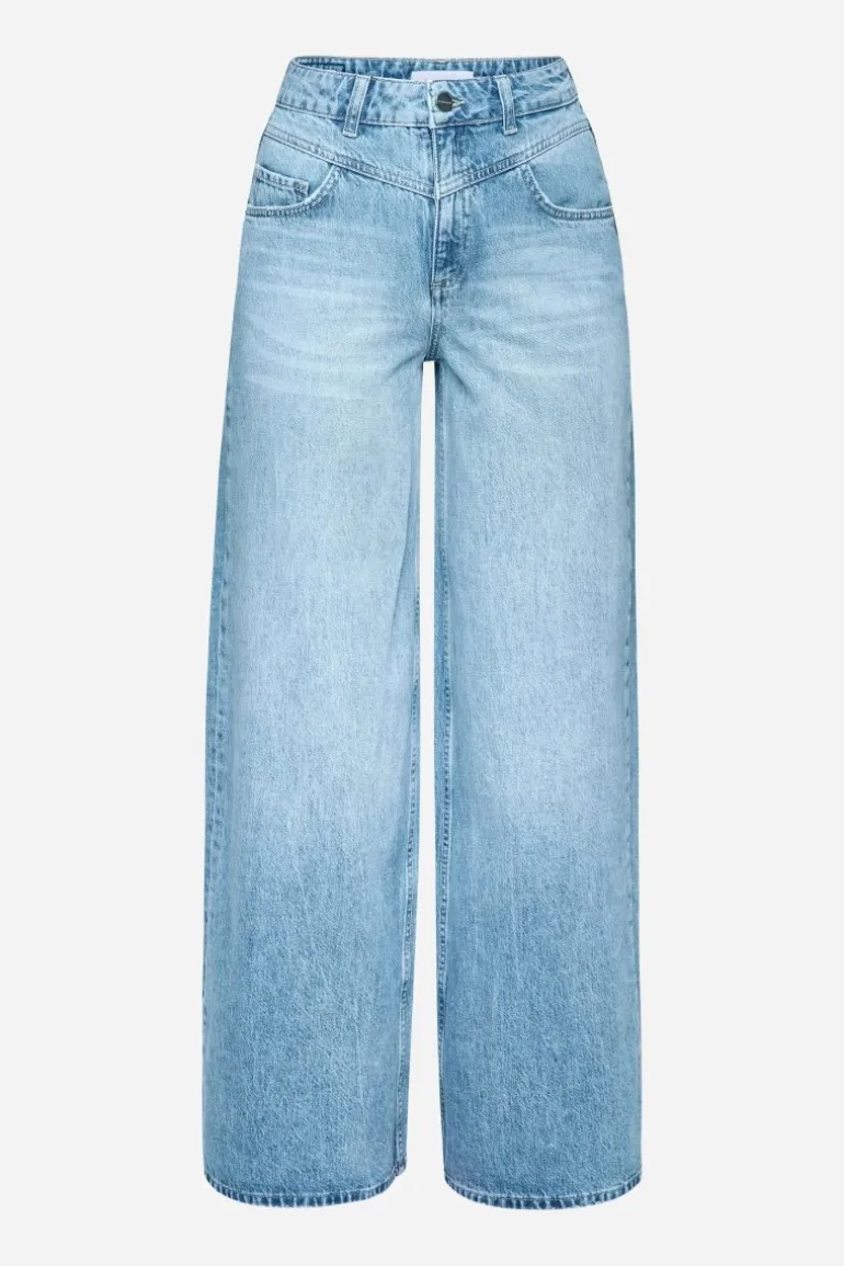 Diese stylische High-Waist-Jeans mit Passe und weitem Bein vereint Vintage-Flair mit modernem Chic! Das robuste Jeansmaterial hält das It-Piece in Form, während der Wide-Leg-Schnitt Dein Bein optisch streckt.