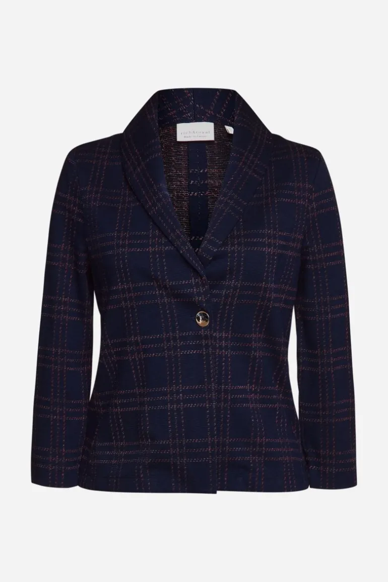 Dieser elegante Blazer mit Schalkragen und Karomuster in Navy und Bordeaux ist das perfekte It-Piece für stilvolle Business-Looks! Wir kombinieren ihn am liebsten zu der passenden Hose für ein harmonisches Outfit.