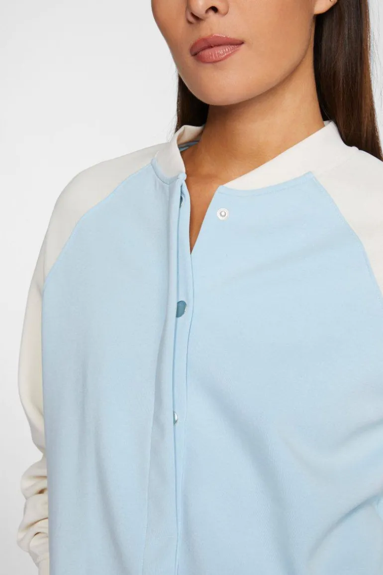 Als kuscheliger Begleiter im College-Stil erweist sich diese zweifarbige Bomberjacke. Denn ihr supersoftes, nachhaltiges Material ist einfach unwiderstehlich. Typische Elemente sind die Raglanärmel, Rippenbündchen und der abgerundete Stehkragen. Für einen Eyecatcher im Rücken sorgt die R&R-Prägung.
