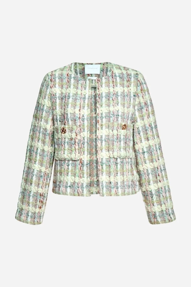 Diese karierte Bouclé-Jacke mit Rundhalsausschnitt wird durch aufgesetzte Taschen und goldene Knöpfe zum eleganten It-Piece! Ihr klassisches Design macht sie perfekt für stilvolle Auftritte im Office oder als Dinner-Outfit.