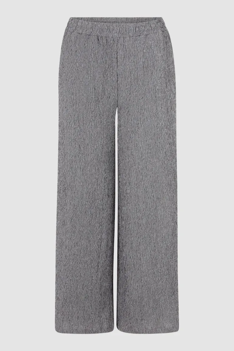 Das zweifarbige Kreppmaterial der Pants bringt ein ausdrucksstarkes Gesamtbild. Trendig präsentiert sich die Hose auch mit ihrem weiten Bein. Dank des Gummibundes und der Taschen trägt sie sich recht bequem.