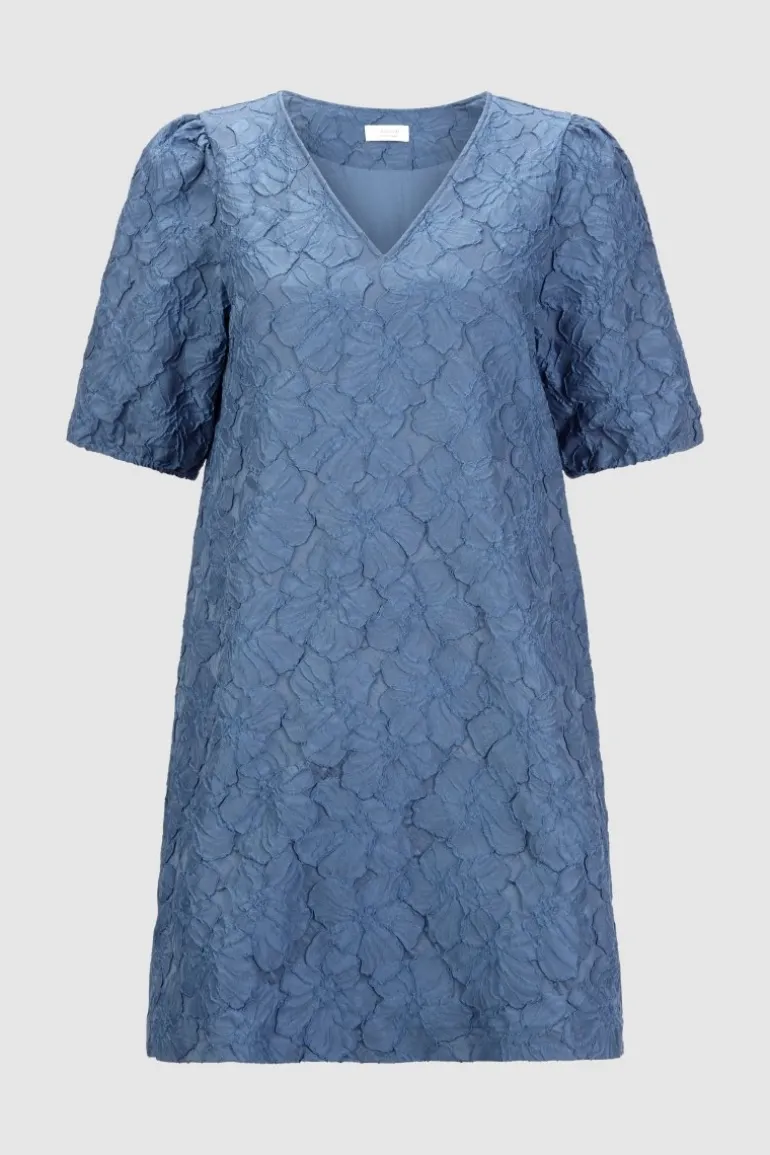 Extravagant präsentiert dieses Minikleid einen festen Jacquard mit romantischem Flower-Look. Es kommt im femininen Tailoring mit Puffärmeln und V-Neck. Komfortables Extra sind die Seitentaschen.