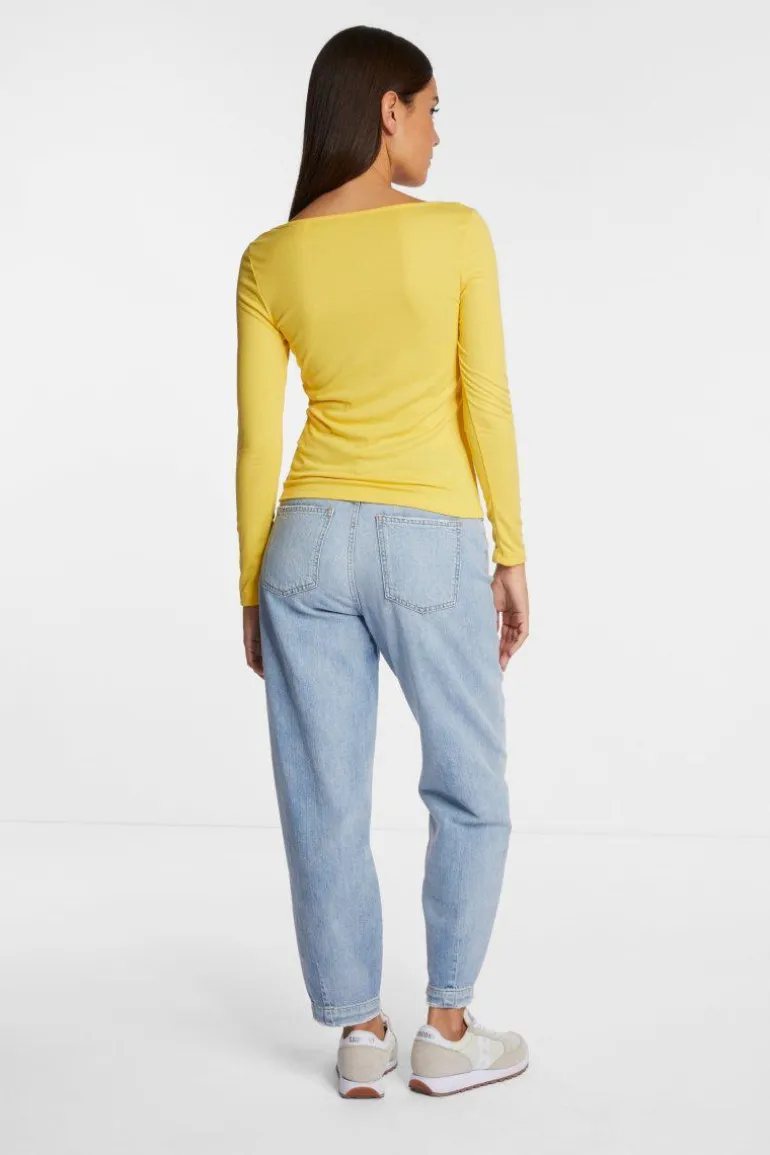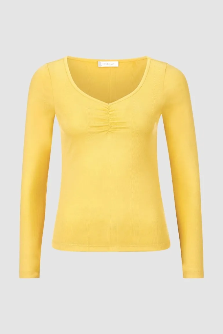 Für einen chilligen Look sorgt dieses Longsleeve mit seinem lässig gesmoktem V-Neck. Der figurnahe Schnitt kommt in dezenter Rippenstruktur. Dank weichem Material-Mix überzeugt das Basic mit Tragekomfort.