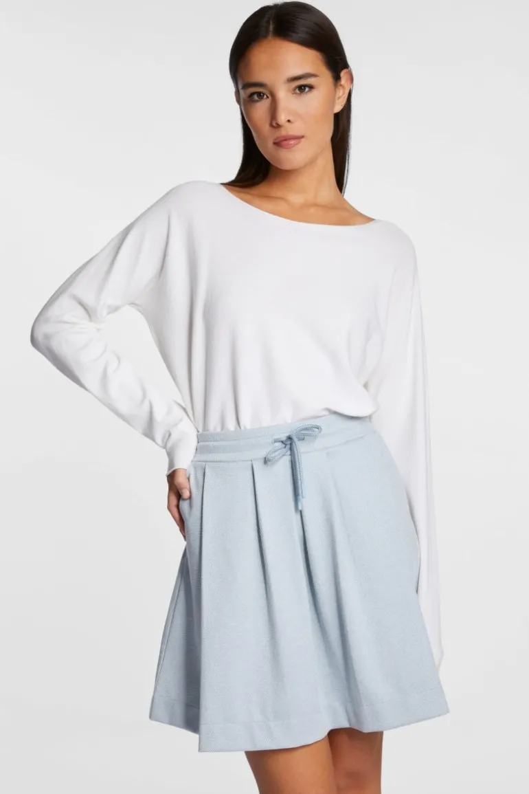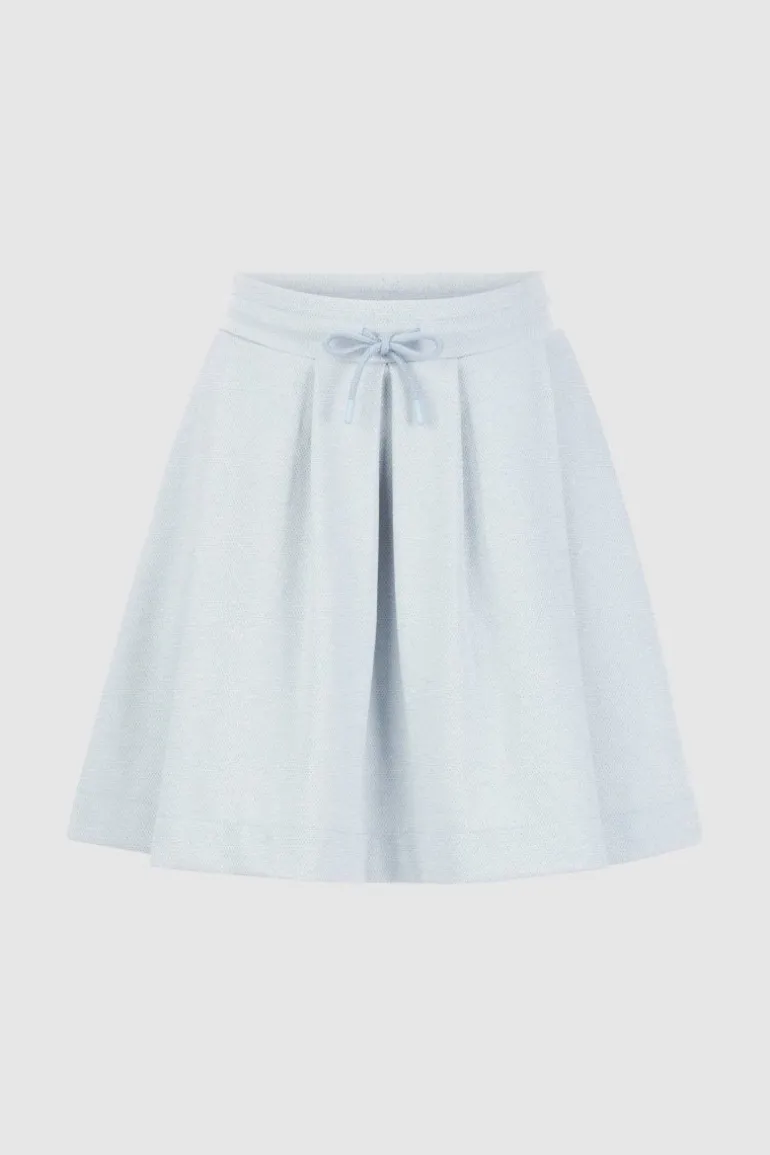 Durch seine ausgestellte Form aus festem, GRS-zertifiziertem Jacquard-Material mit Glanzgarn präsentiert sich dieser Minirock unverschämt lässig. Seine Falten münden in einem Bund mit Kordelverschluss. Seitentaschen bringen Extrakomfort.