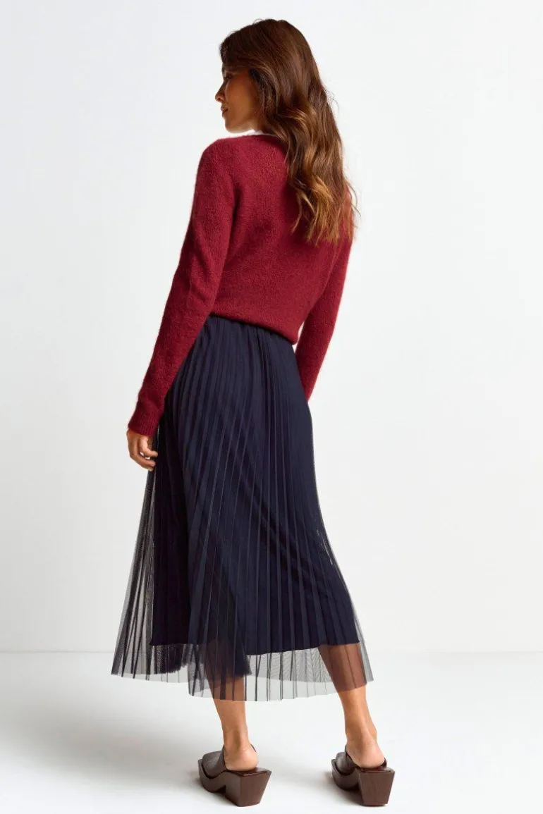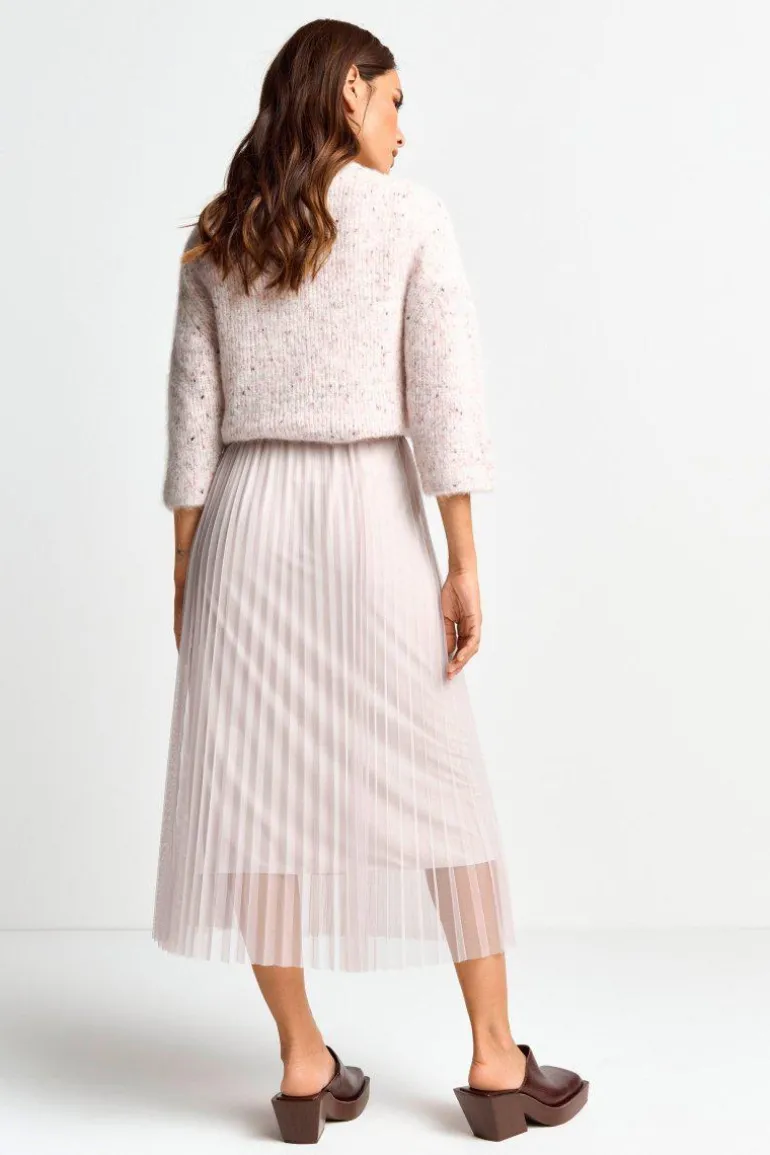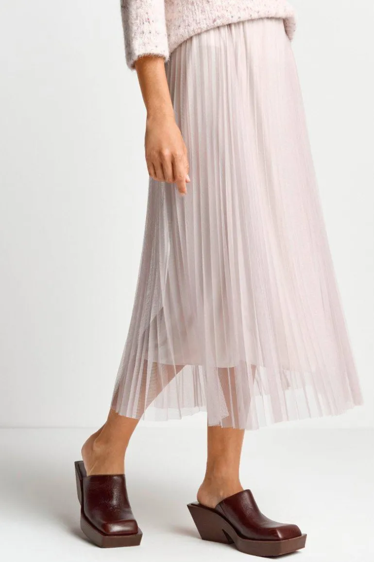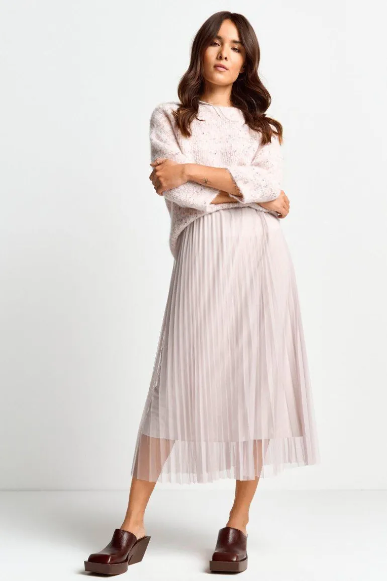 Dieser Midi-Plisseerock aus Tüll ist ein Must-have für elegante Outfits und festliche Events! Die fließende A-Linie und der elastische Taillenbund schmeicheln Deiner Figur und sorgen für maximalen Tragekomfort.