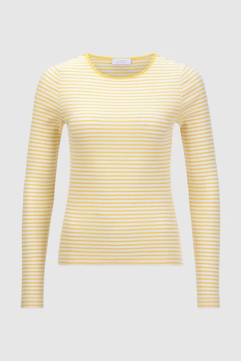 Das gestreifte Rip-Longsleeve bringt Abwechslung in Deine Basics. Es kommt im Bodycon-Fit mit Rundhals. Die Bio-Baumwolle mit Elasthananteil garantiert den ganzen Tag über unschlagbaren Tragekomfort.