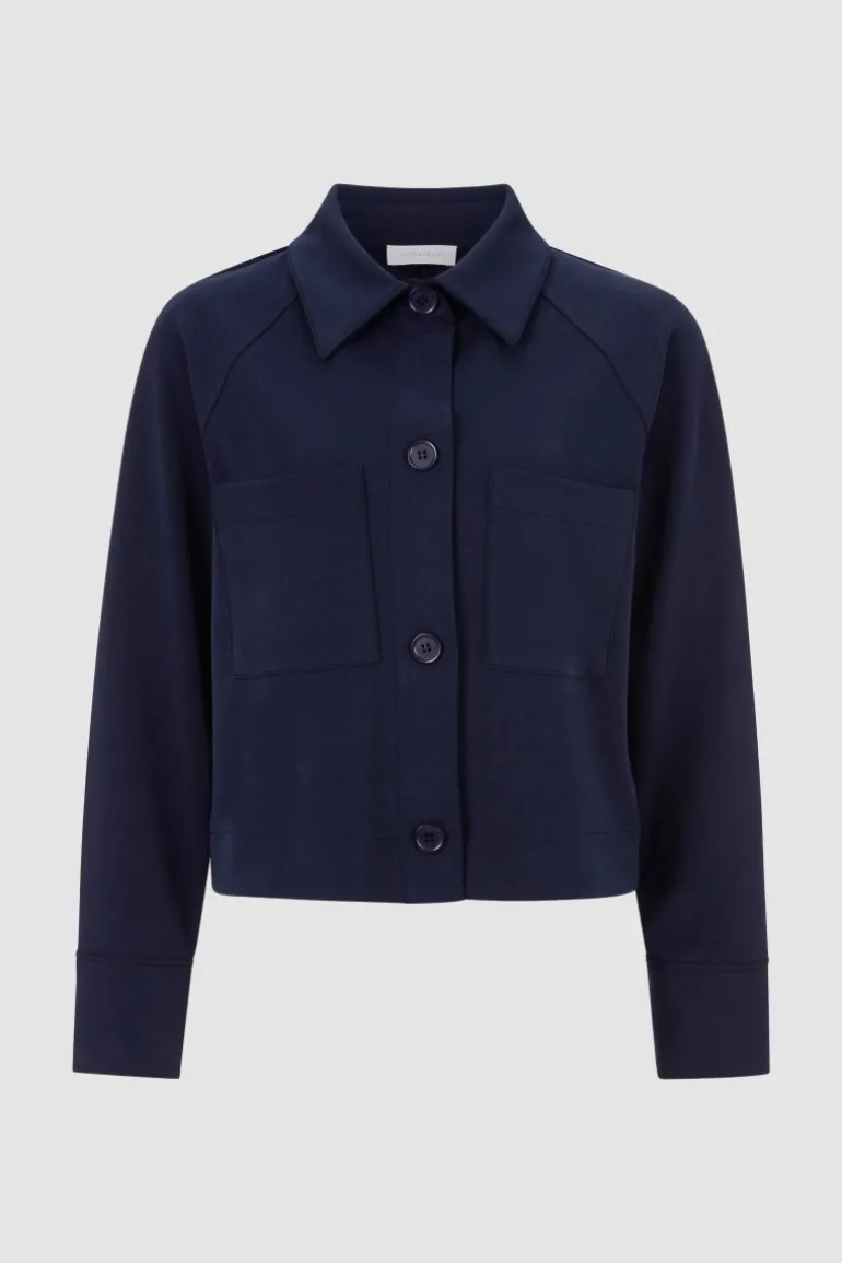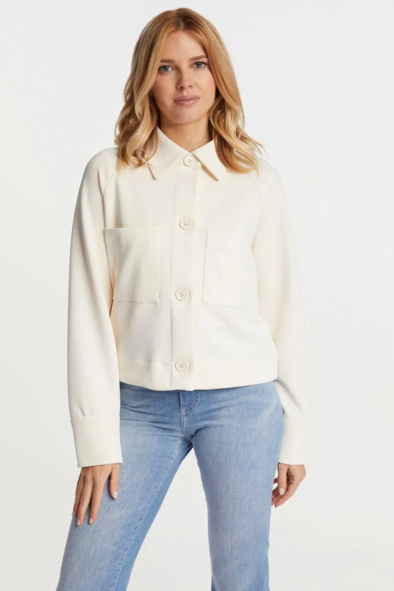 Softes Scuba-Material im Denim-Look und ein kastiger Schnitt mit Raglanärmeln kennzeichnen den Charakter dieser kurzen Jacke. Classy Chic bringen der Kragen, Knöpfe und die aufgesetzten Taschen. Obermaterial: 52% Modal, 42% Polyester, 6% Elasthan Waschbarkeit: Schonwaschgang 30°C