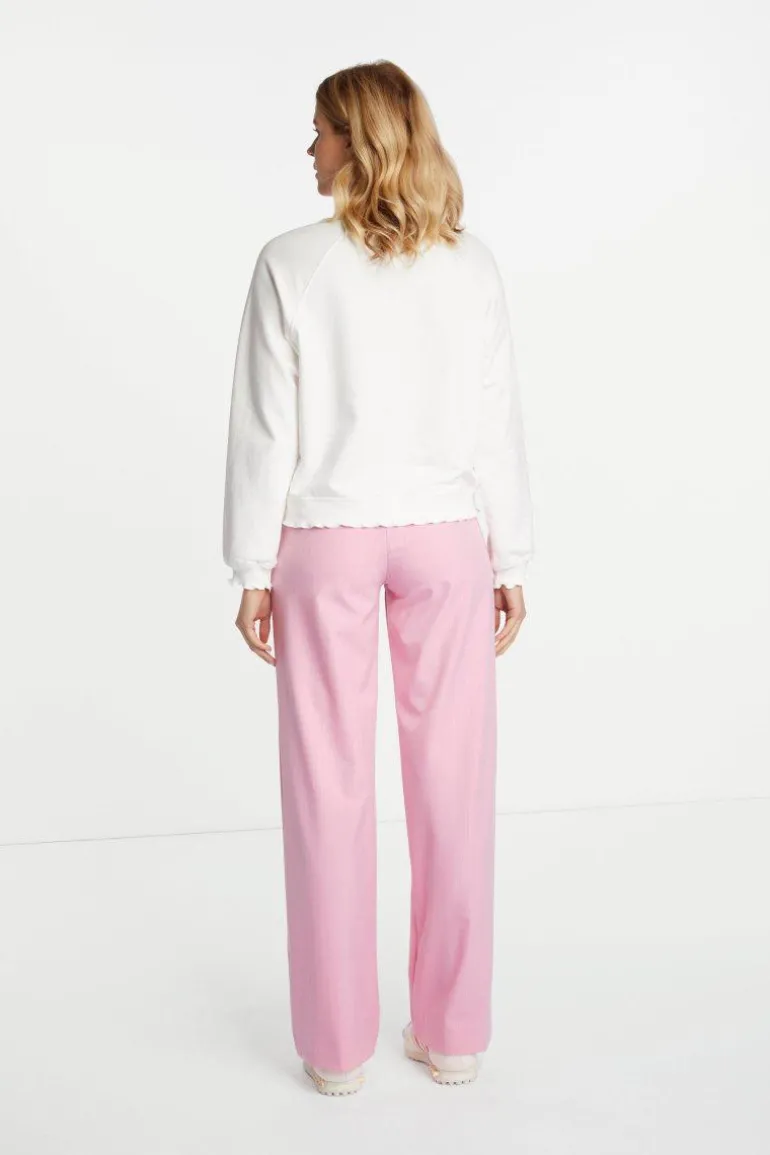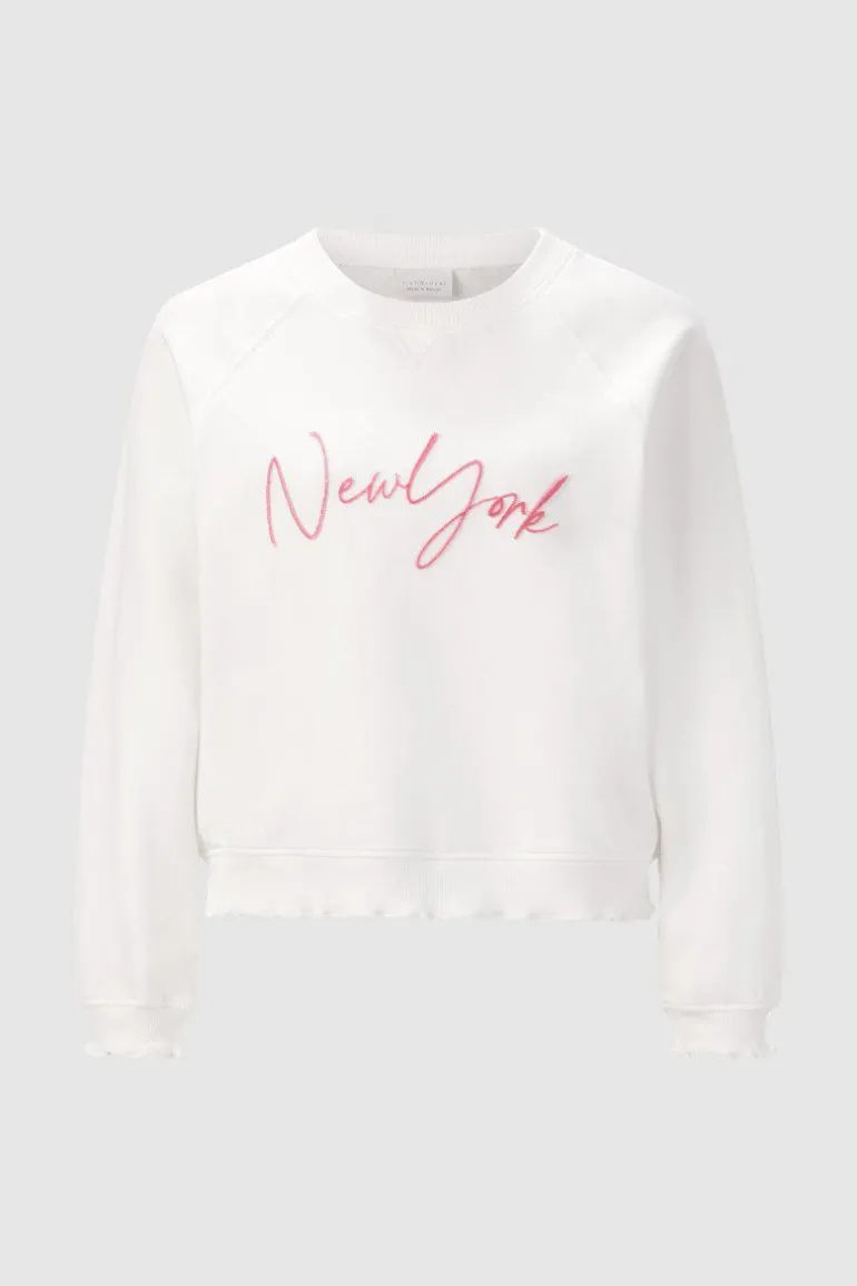 Saumkanten im Frilled-Look und die Curved-Letters-Applikation geben diesem weiten Sweatshirt aus softer Bio-Baumwolle romantische Vibes. Typische Details sind die Raglanärmel und der Rundhals. Obermaterial: 96% Baumwolle, 4%Elasthan Waschbarkeit: Schonwaschgang 30°C