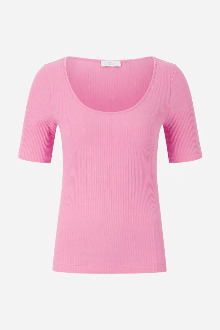 Dieses figurbetonte T-Shirt ist dank seiner feinen Rippstruktur ein vielseitiges Trend-Basic mit weicher Haptik. Gefertigt in Portugal, verbindet es lässige Eleganz mit Nachhaltigkeit und ist ein Must-have für entspannte Casual-Looks.