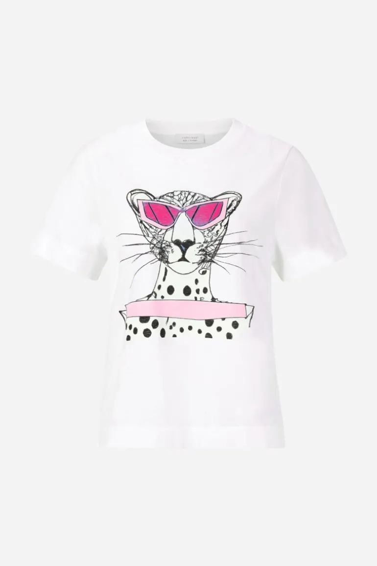 Mit diesem farbenfrohen Leo-Print ziehst Du garantiert die Blicke auf Dich. Das T-Shirt kommt im klassisch lockeren Schnitt mit Rundhals und Viertelarm. Der Baumwoll-Mix mit Bio-Anteil verwöhnt Dich mit Tragekomfort.
