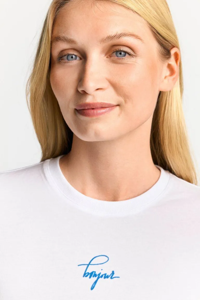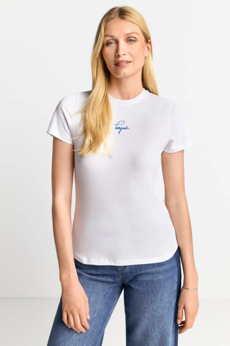 Dieses T-Shirt im Bodycon-Fit wird dank dezentem Schriftzug zu einem extravaganten Trend-Basic! Die Fertigung aus atmungsaktiver Bio-Baumwolle macht das Shirt zur perfekten Wahl für sportliche und elegante Alltagslooks.