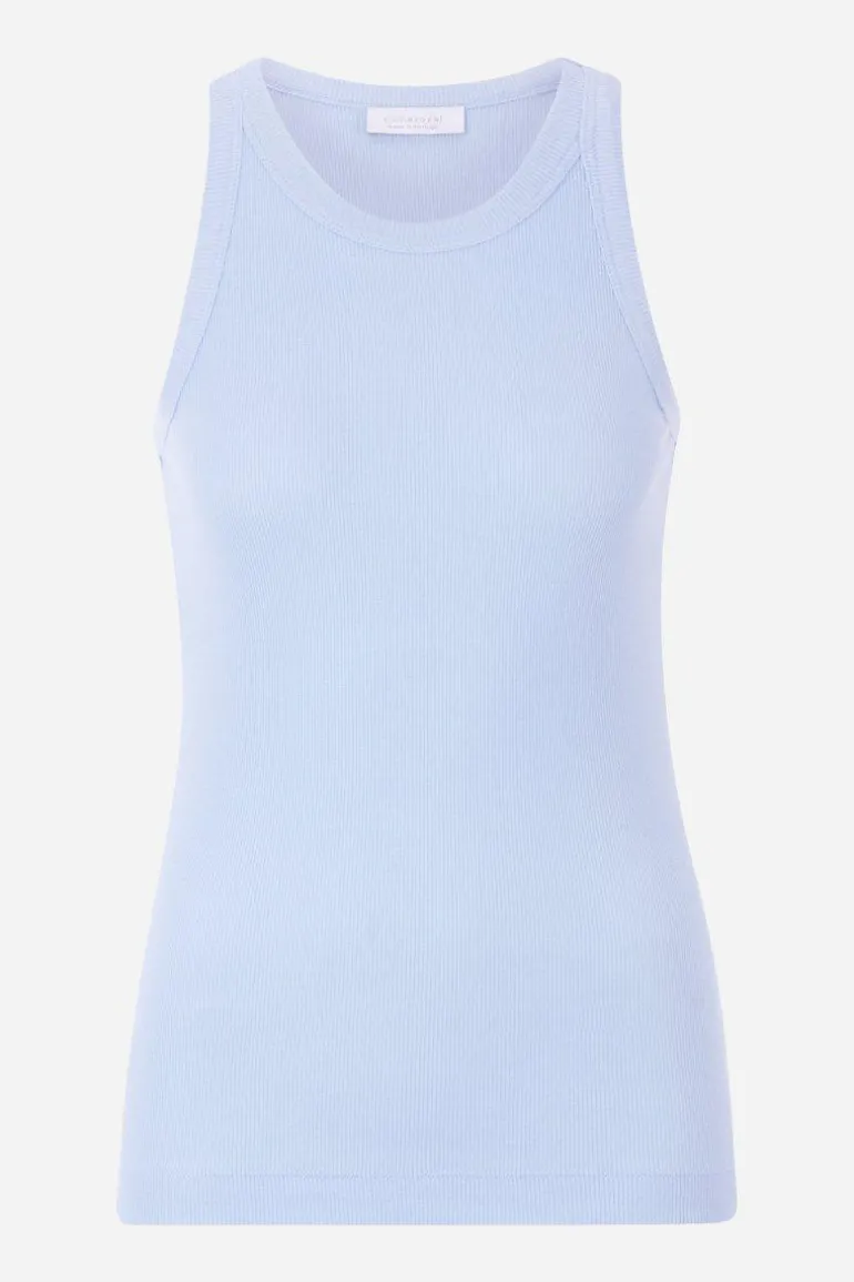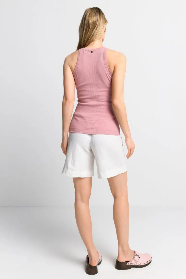 Dieses figurbetonte Ripptop wird dank seiner dezenten Pastellfarbe zu einem extravaganten Trend-Basic. Die Fertigung aus atmungsaktiver Baumwolle macht das Top zur perfekten Wahl für sportliche und elegante Alltagslooks.