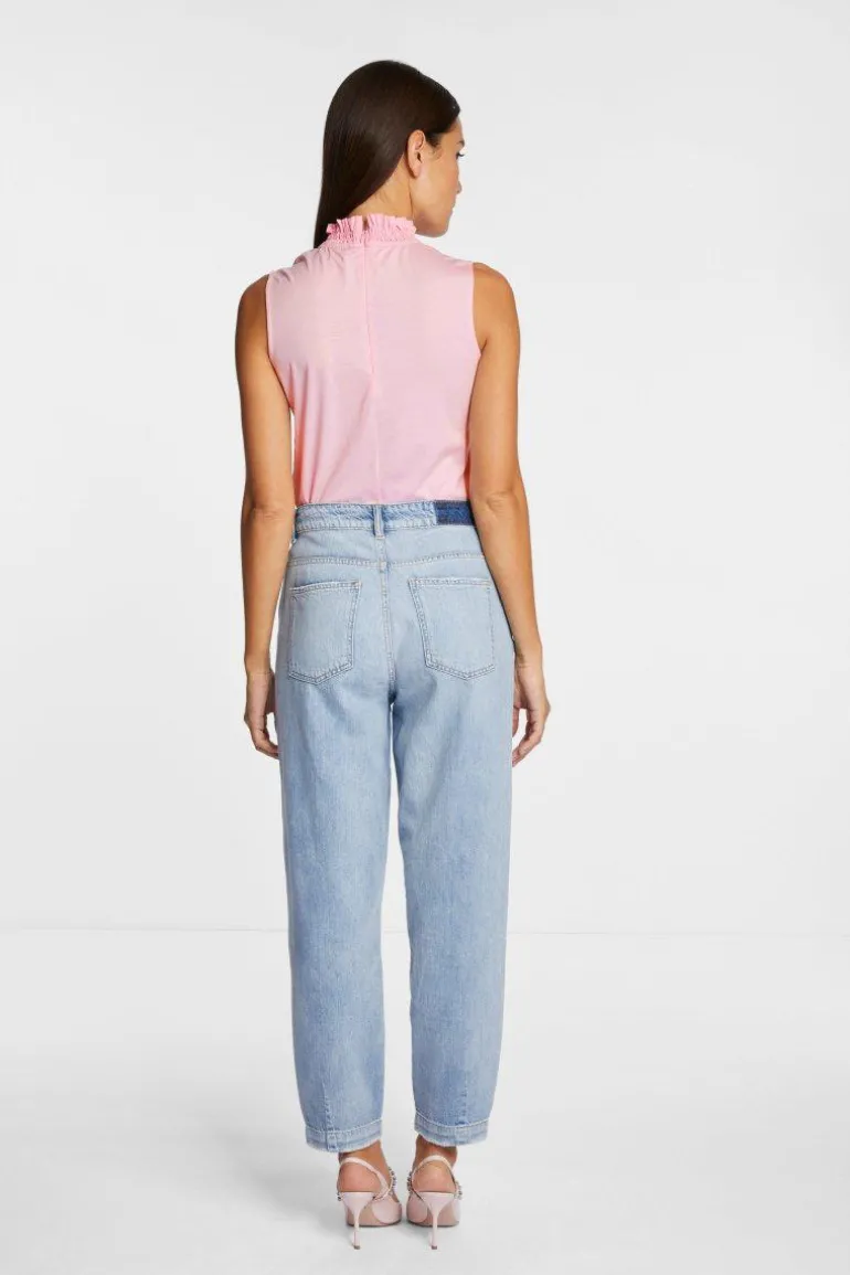 Zaubere Dir mit diesem verspieltem Top ein Layering ganz nach Deinem Geschmack. Blickfang sind der gesmokte Kragen mit Strassverzierung. Das angenehme Oberteil sitzt hautnah und besitzt einen kurzen Rückenreißverschluss.