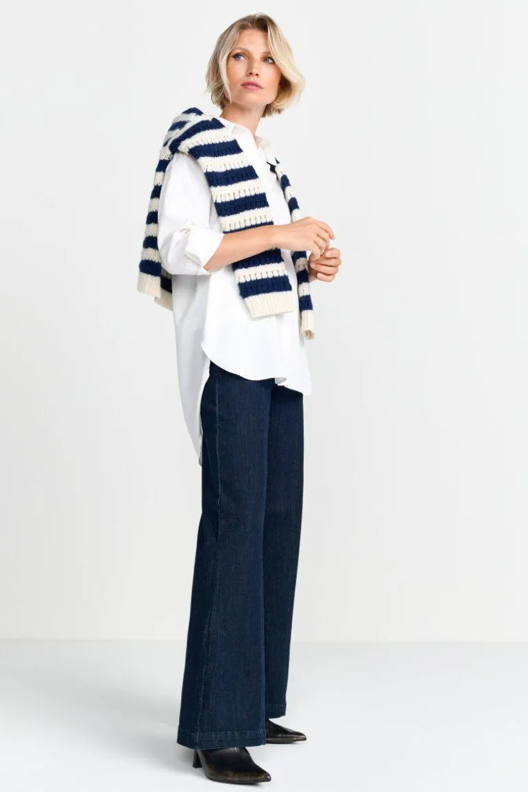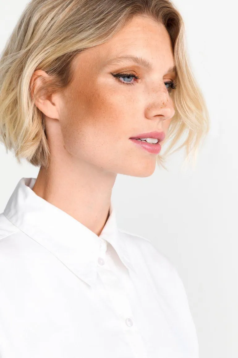 Diese weiße Bluse mit klassischem Hemdkragen und lässiger Oversized-Passform ist ein Must-have für Business Casual Looks! Die weiche Baumwollqualität bietet höchsten Tragekomfort und wir kombinieren sie am liebsten zu Wide Leg Jeans und High Heels.